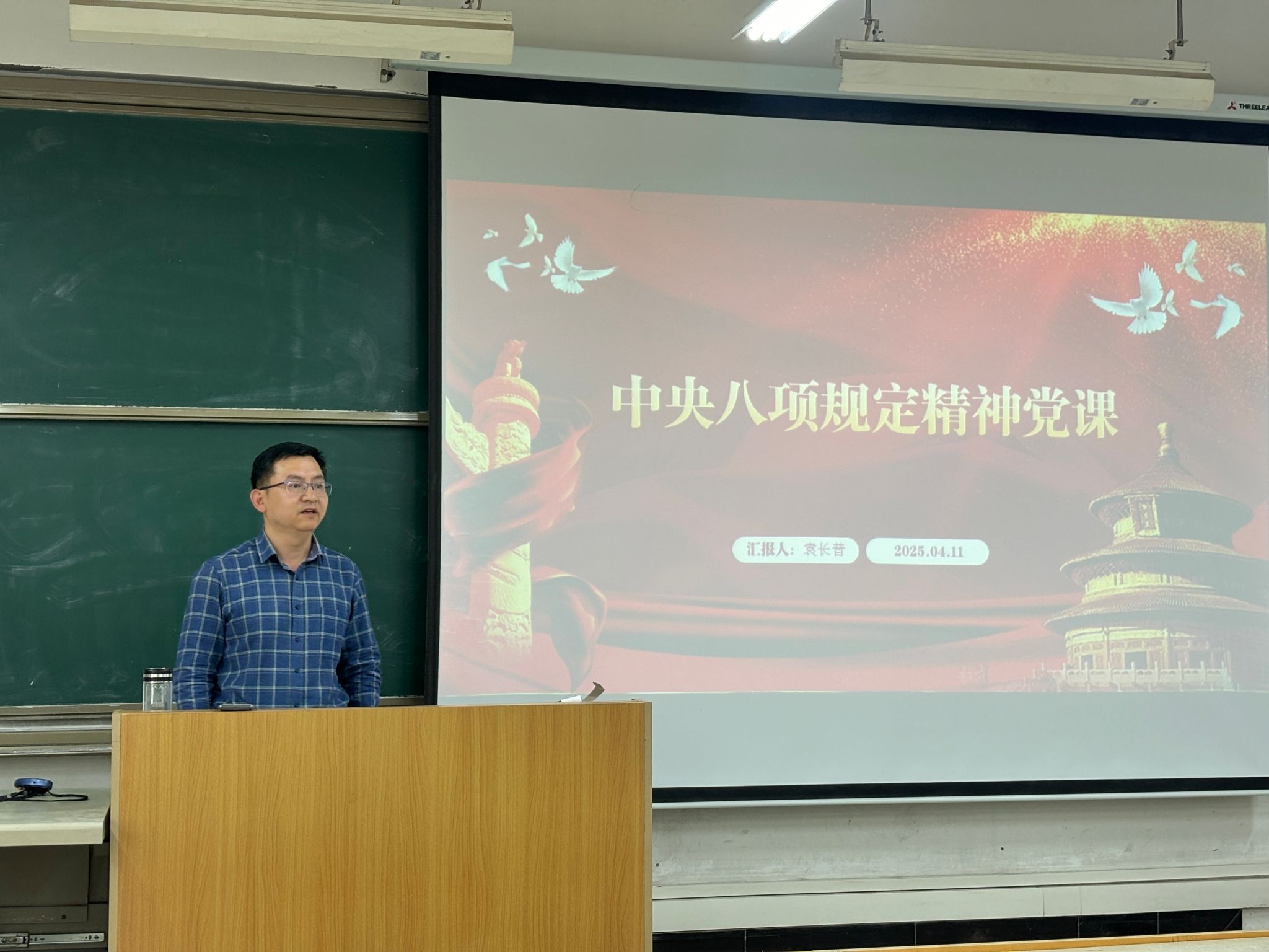 为深入贯彻中央八项规定精神,进一步加强作风建设,4月11日下午,Beat365官方网站教工第一党支部在教学楼A315组织开展了以“中央八项规定精神学习教育”为主题的专题党课。本次党课由党支部书记袁长普主讲,支部全体党员参加学习。