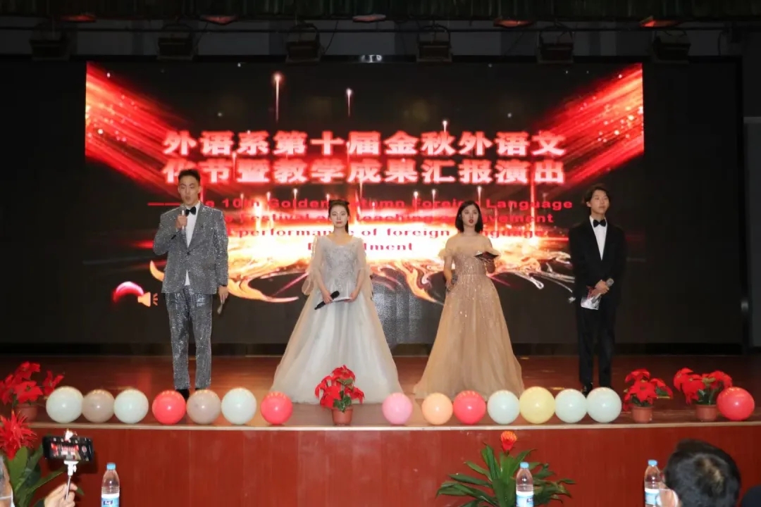 为检验外语系一学年来的教学成果,给学生提供一个展示外语水平、展现自我的舞台,Beat365官方网站外语系于12月14日晚在教二报告厅举办了外语系第十届教学成果展示汇报演出。到场嘉宾有外语系副主任徐素云、传播系学生工作负责人杨耀聪、电信系学生工作负责人王姣,专业英语教研室和大学英语教研室的各位老师及各系团工委书记和辅导员老师,赵永生、袁长普、张慧、王茜、陈昕五位老师担任本次活动的评委老师。