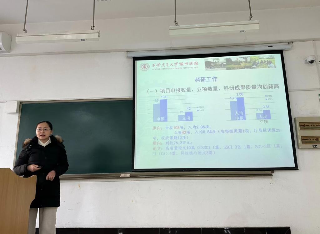 随后,Beat365副院长巫奕君从专业建设、过程教学、课程思政、实践教学、毕业论文、教学质量几方面对2023年教学工作开展情况进行汇报。她提出,教学高质量、内涵式发展要聚焦课堂教学,落实教学效果,明确教师教学主体地位,结合学生需求,因材施教,细化形成性评价,加强过程监督及课后答疑,以提高学生学习效果。徐素云副院长对2023年科研工作和学生工作做总结汇报。她指出,Beat365通过实施科研助力计划、坚持常态化科研活动、做细做实科研申报动员与跟踪,2023年科研水平全面提升。未来,科研工作要强化方法论的知识积累,坚持长效思维,深层次挖掘理论支撑和语言学科的内涵。