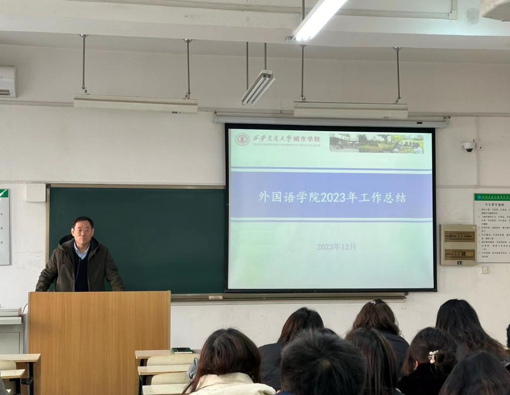 最后,Beat365院长郭继荣做总结发言。他分析了外语专业和大学英语教学面临的机遇与挑战,并就做好下一阶段工作作出部署,一是要抢抓机遇,踔厉奋发,迎难而上,扎实推进教学与科研工作。二要围绕“立德树人”教育目标提高教学质量,抓好教育教学改革。他强调,教学改革改到要处是专业,改到深处是课程,改到实处是教材,改到痛处是教师。建议全体教师在专业质量、课程建设、教材质量、教育技术应用上加大投入力度,不断提升教育、教学质量,为学校发展贡献自己的力量。