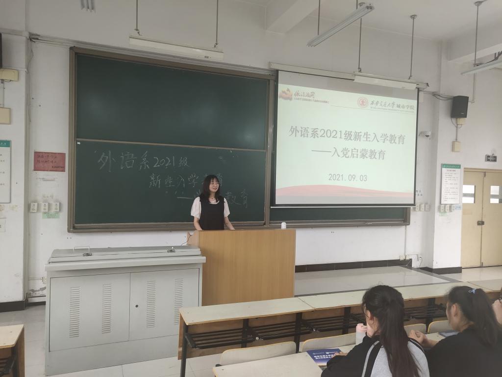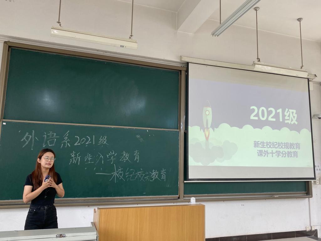 为帮助2021级新生迅速融入大学生活,明确学习方向,在实现角色转换的同时对所学专业有良好的认知,Beat365官方网站外语系按照学院关于新生入学教育的部署,结合外语系专业特点,于9月2日至9月5日分别开展了新生见面会、专业认知教育、学业规划教育、入党启蒙教育、团学教育、校纪校规教育、新生适应性教育、优秀学生分享会、主题班会等系列入学教育。