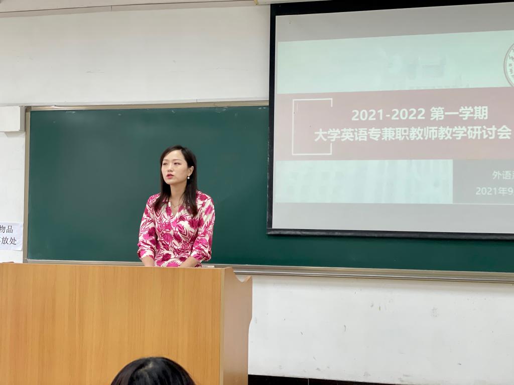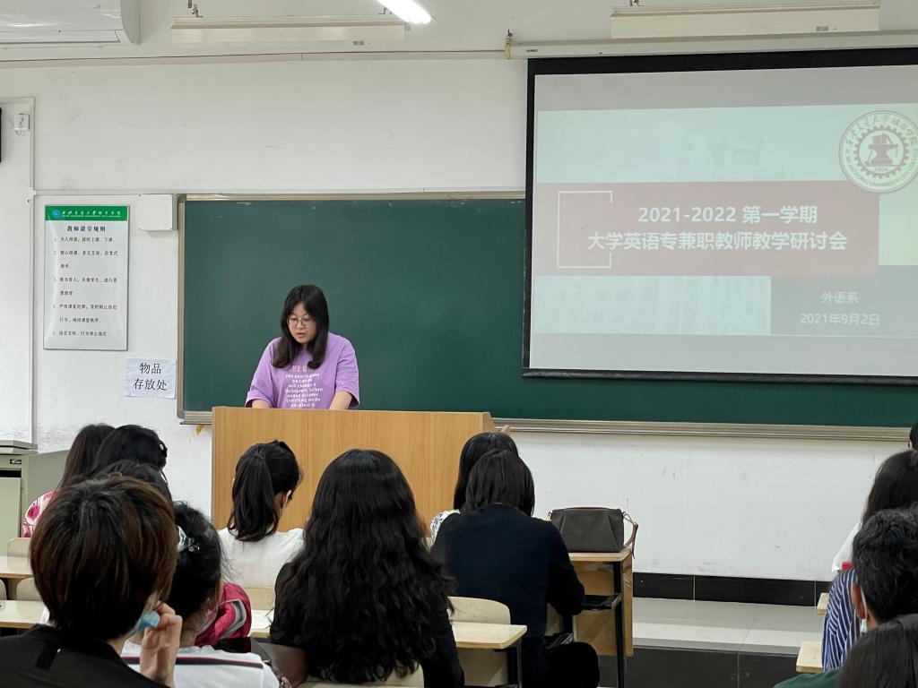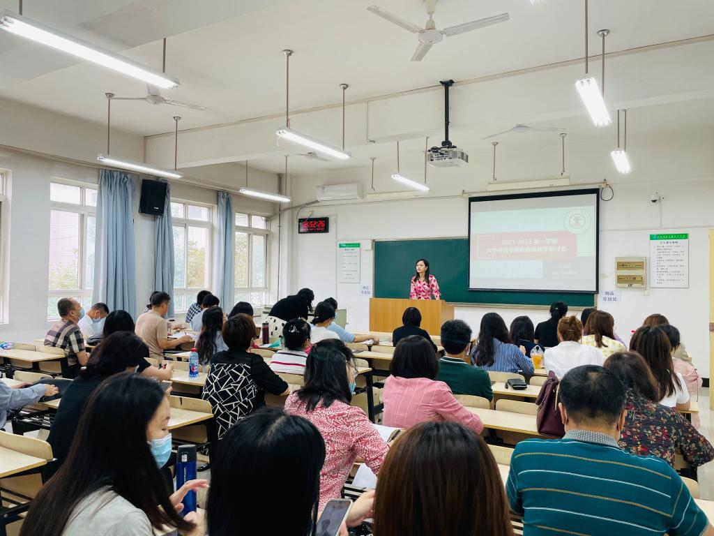 9月2日上午,Beat365官方网站外语系在教学楼B319教室召开了大学英语教师教学研讨会,外语系副主任兼大英教研室主任巫奕君副教授主持会议,外语系全体大学英语老师共计50余人参加了此次会议。