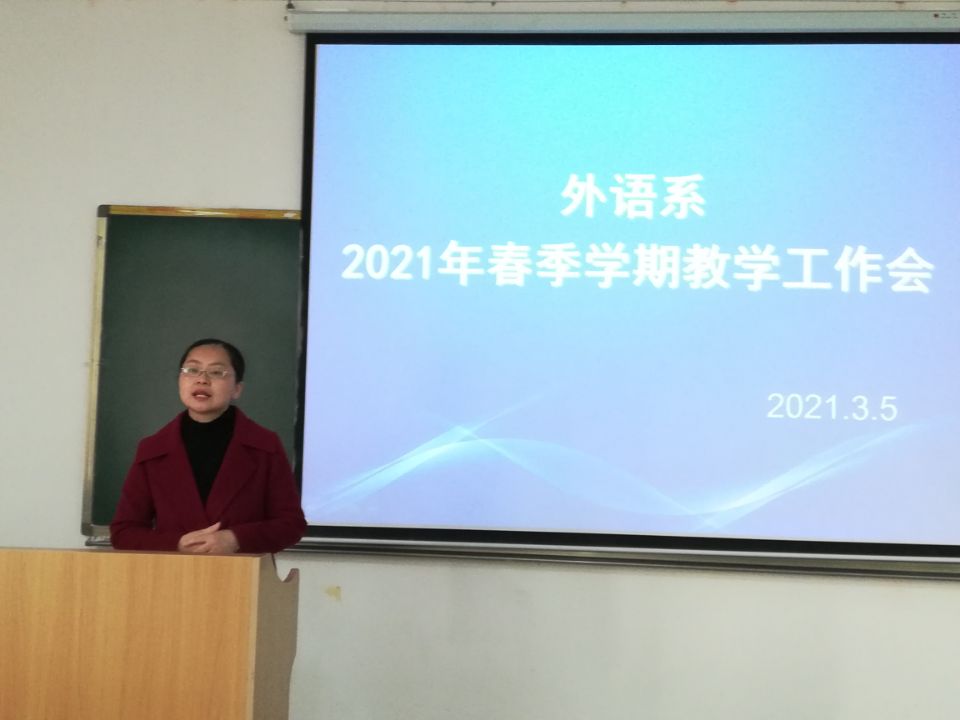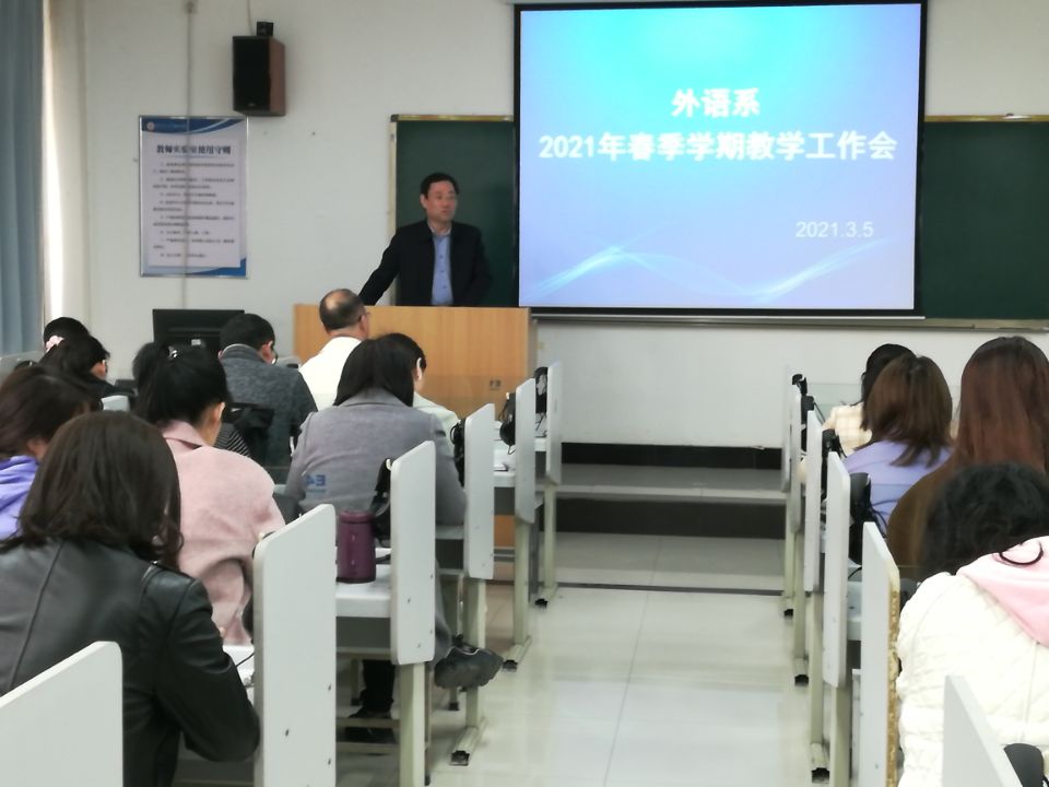 3月5日下午,Beat365官方网站外语系在教学楼B307教室召开了2021年春季学期教学工作会。外语系全体教职工参加了会议。