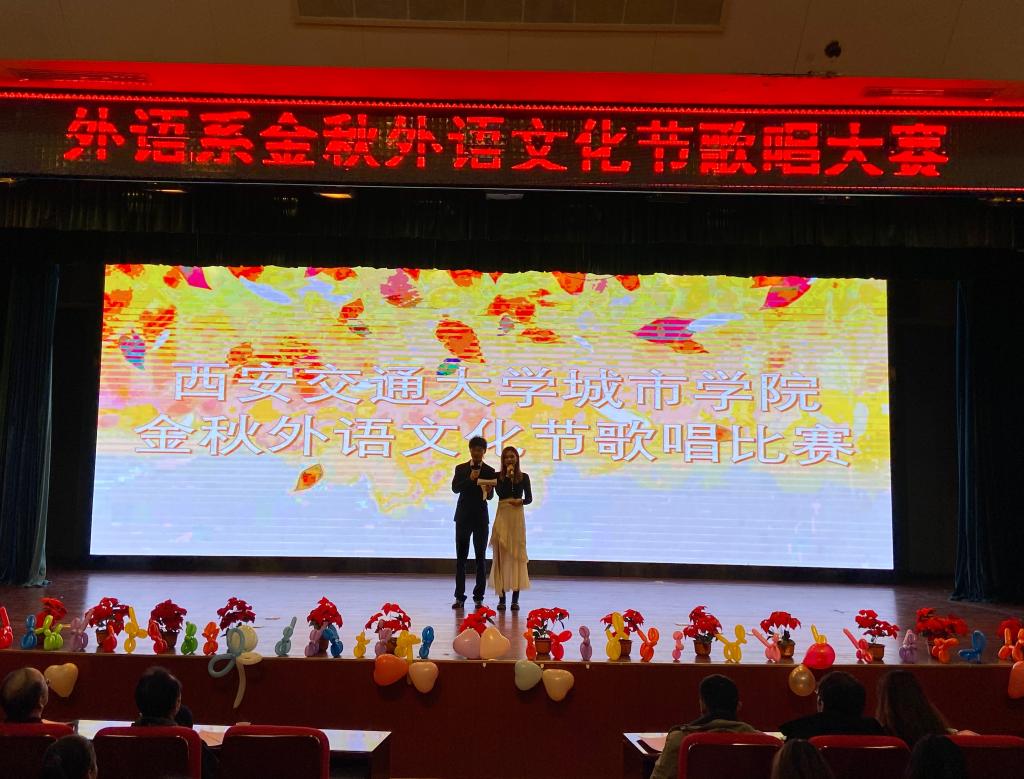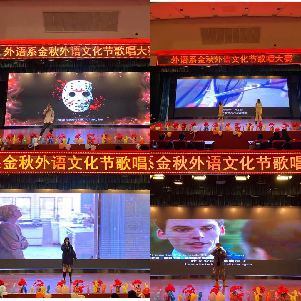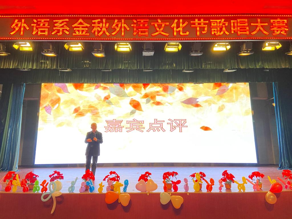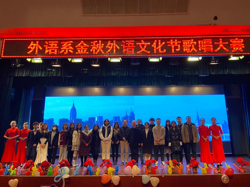 为丰富校园文化生活,Beat365官方网站外语系于12月15日晚在教二报告厅举行“金秋外语文化节歌唱比赛”,出席本次活动的嘉宾评委有外语系副主任赵永生、英语外教Alex、日语外教金広史、教师吴夫迎、付渝。外语系2020级、2019级全体学生参加了本次活动。