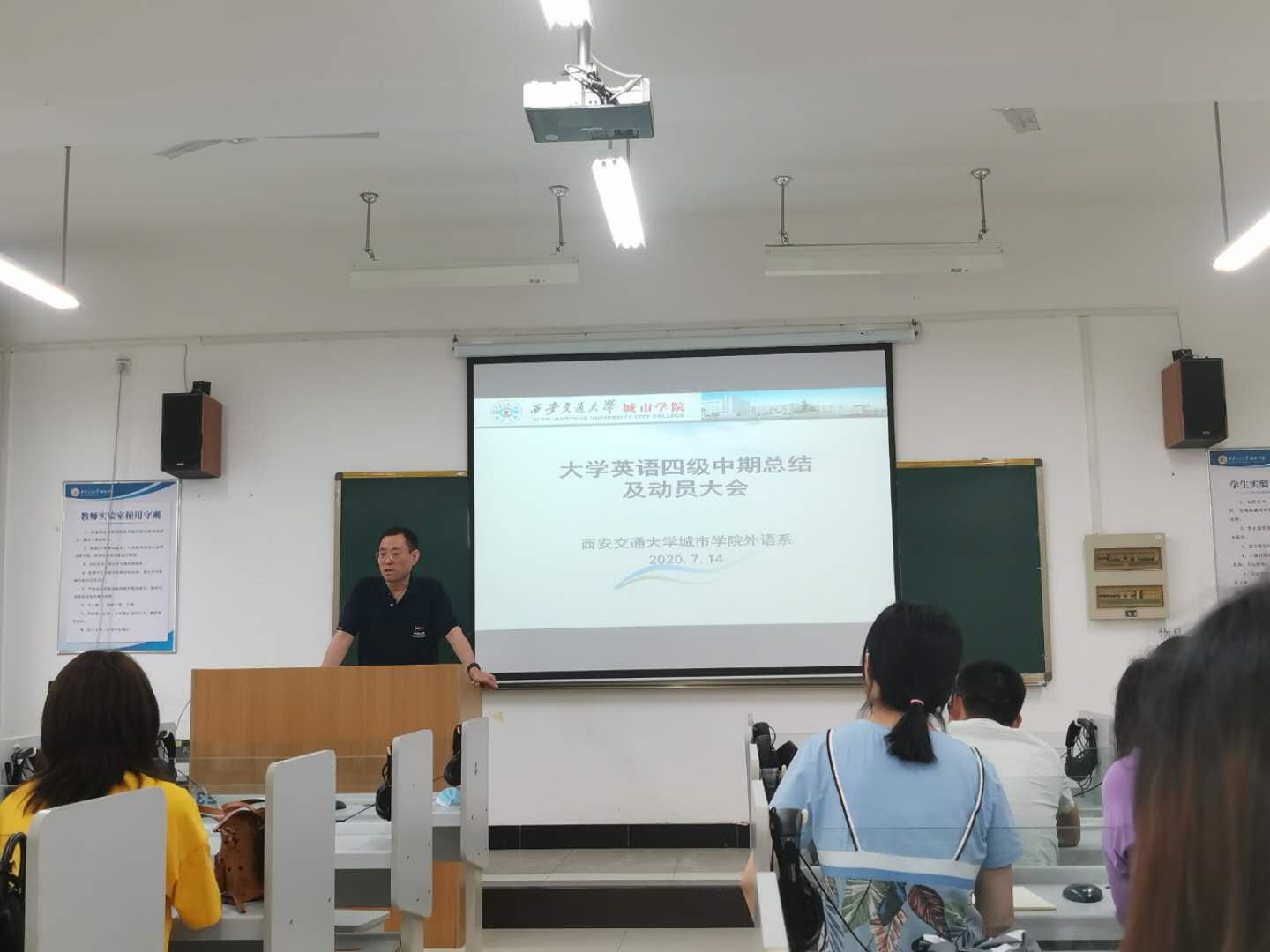 7月14日,Beat365官方网站外语系召开大学英语四级教学改革阶段性总结大会。参加会议的有外语系主任郭继荣教授、系主任助理巫奕君以及大学英语教研室全体专职及兼职教师近40人。