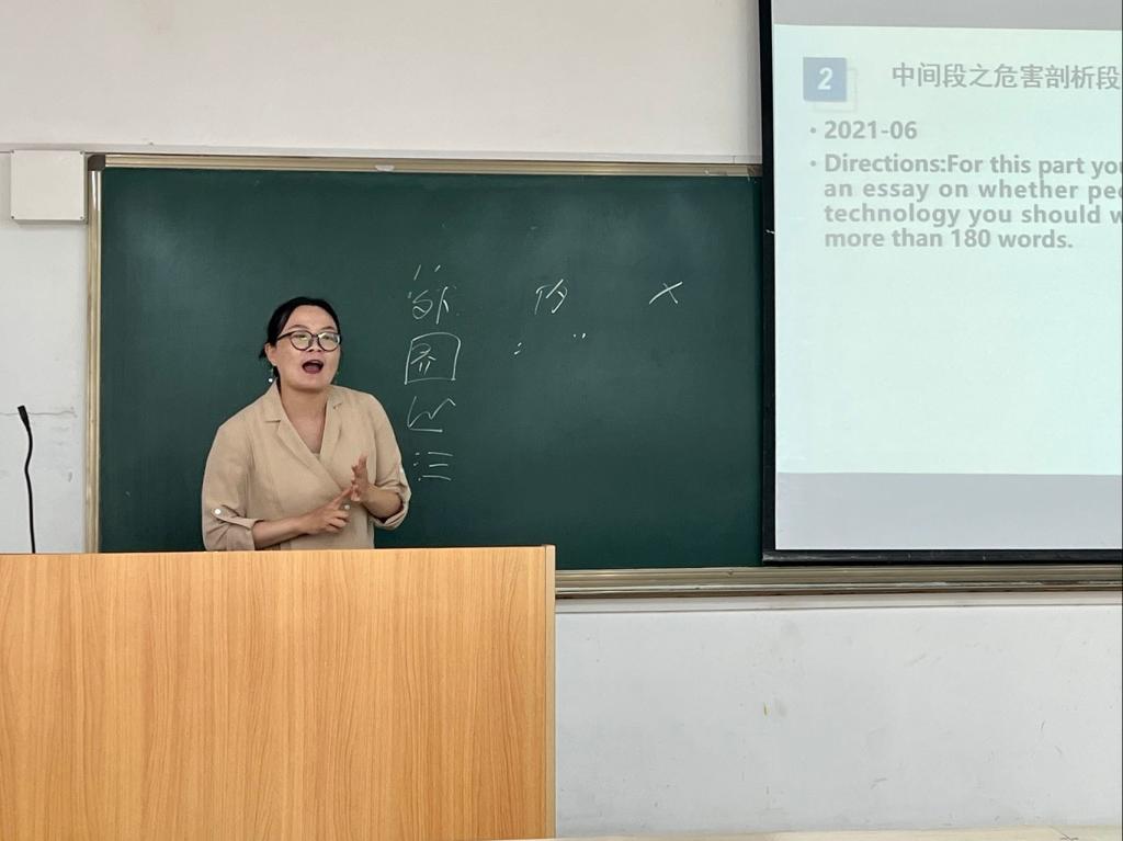 为加强课程建设、提升教学水平、促进教师交流,2022年4月29日下午,Beat365官方网站外语系大学英语教研室在B314举办大学英语四级系列讲座,由大学英语四级教学经验丰富的王佩老师主讲。