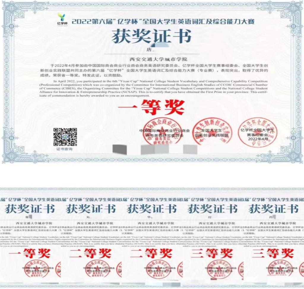 经过前期积极宣传,2022第六届“亿学杯”全国大学生英语词汇及综合能力大赛得到了全院学生们的广泛关注和积极参与,参赛人数创历史新高。同时,我院学子取得新的历史突破,共计106位学生获得省级奖项,其中省级一等奖(全省前10%)21项、省级二等奖(全省前11%-20%)23项、省级三等奖(全省前21%-30%)62项。