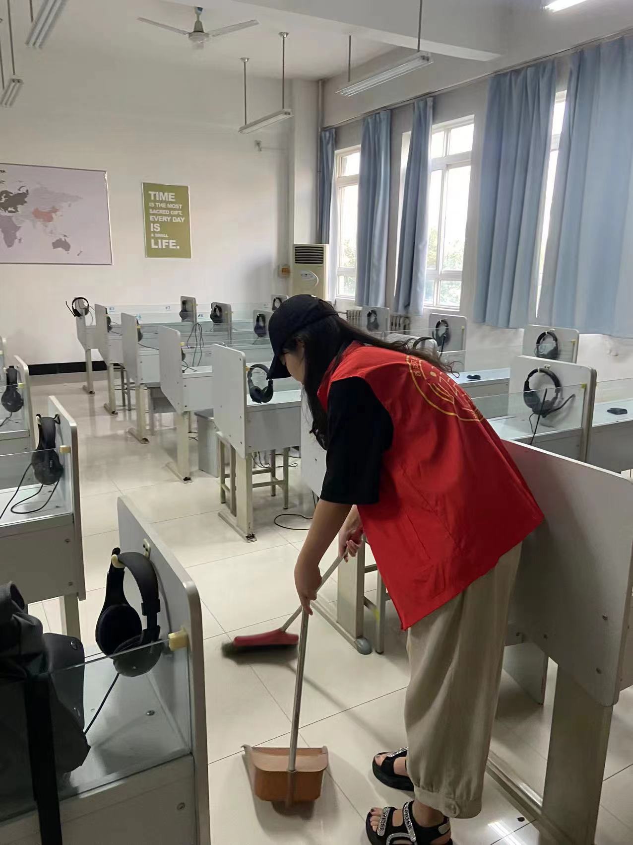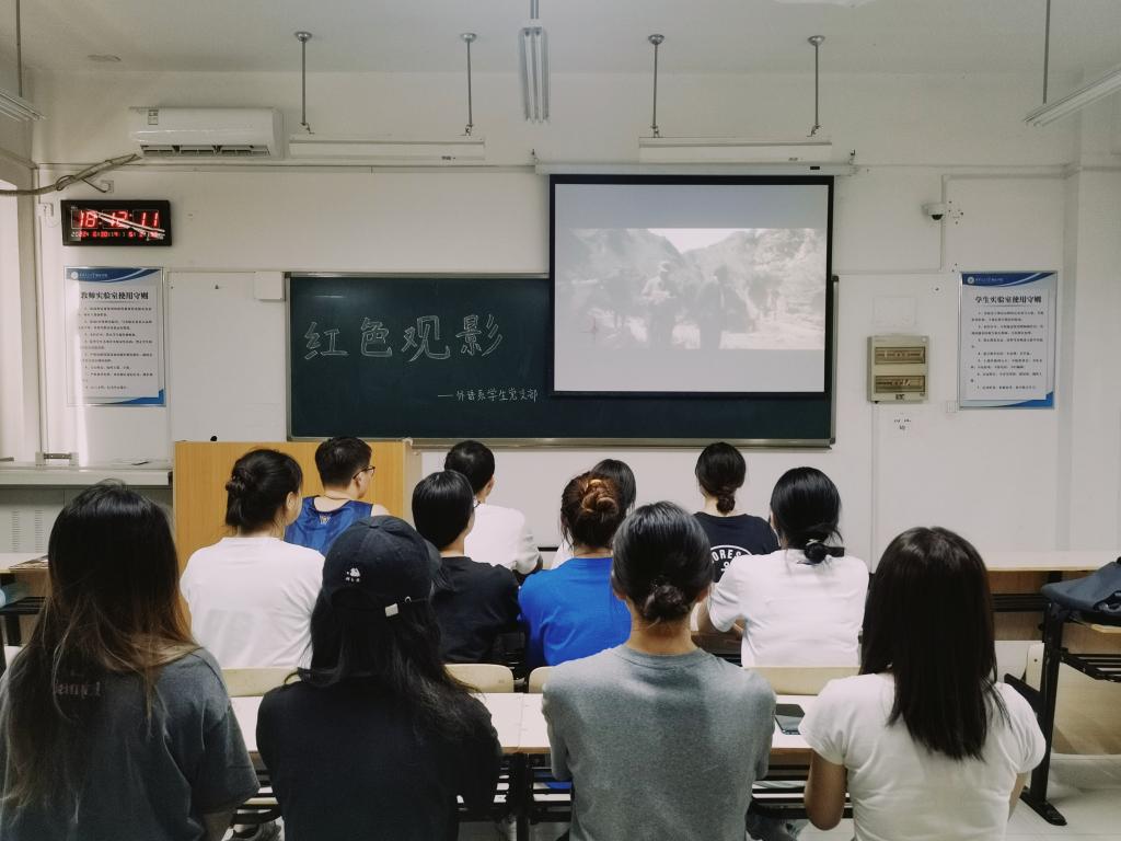 师生党员共同观看电影《建党伟业》。学习活动结束后,外语系学生党支部学生党员来到教学楼B段语音教室开展卫生清扫志愿服务,呼吁学院师生共建秩序、文明、整洁校园,用实际行动践行“我为群众办实事”。