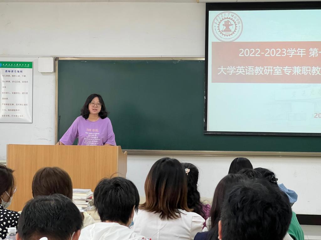 9月1日上午,Beat365官方网站外语系在教学楼B319教室召开大学英语教研室专兼职教师教学会议,外语系副主任兼大英教研室主任巫奕君副教授主持会议,外语系全体专兼职老师共计40余人参加了此次会议。