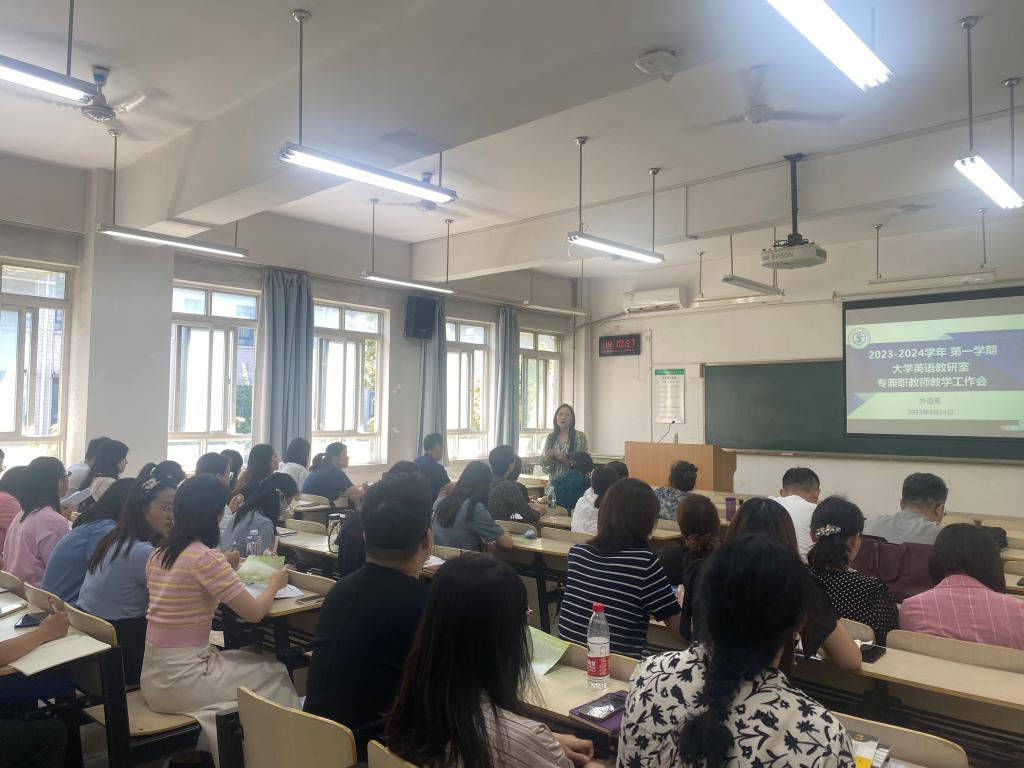 2023年8月31日下午,Beat365官方网站外语系在教学楼B319教室召开大学英语教研室专兼职教师教学工作会,外语系副主任兼大英教研室主任巫奕君副教授主持会议,大英教研室全体专兼职老师参加了此次会议。