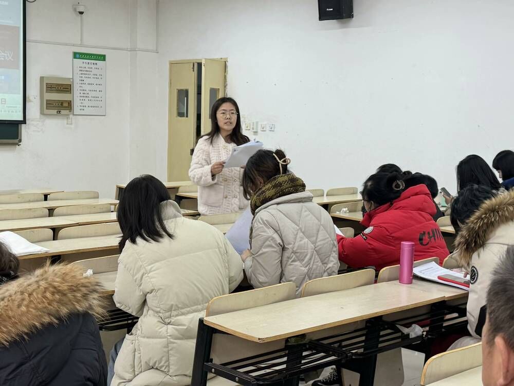 首先,巫奕君副教授就新学期“教学质量提升”、“第二课堂推广”、“科研教研相长”等工作进行整体规划部署。第一,在教学质量方面,教师要精心设计好开学第一课,关怀学生,彰显教育内涵,帮助学生了解课程内容和学习方法、快速进入学习状态。此外,教师需做好上课准备,提前到教室检查多媒体设备运行状况,调试课件,加强课堂管理,避免教学事故。与此同时,教师应将科学育人贯穿到整个教育教学过程中,鼓励、引导学生积极参与学习,给予针对性意见,提高其学习效率并提高四级通过率。第二,在第二课堂活动方面,本学期将开展跨文化能力大赛、外语配音大赛、大学生英语竞赛和系列英语讲座等丰富多彩的综合实践活动,通过搭建让学生广泛参与的平台,突出应用导向和价值引领,引导学生更好地传承弘扬中华优秀传统文化,感受时代律动,获取精神力量,在校庆期间展现我校学子风采。第三,在科研教研方面,巫奕君副教授鼓励大家做研究型教师,教而不研则浅,研而不教则空,青年教师的专业化成长与发展离不开多反思、多总结、多实践,需用研究的眼光对待教育教学和学生发展,将教科研成果反哺教学,做到“教”“研”相长。