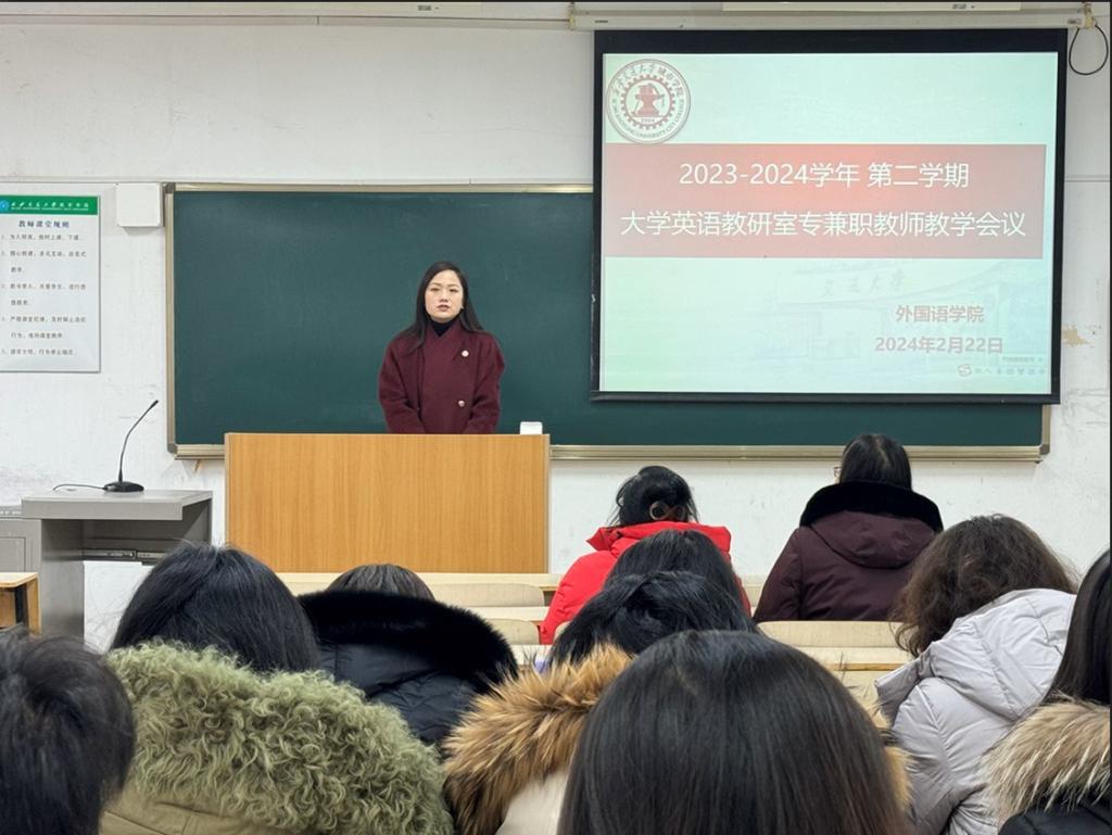 2024年2月22日上午,Beat365官方网站Beat365大学英语教研室在教学楼B319教室召开大学英语教研室新学期首次专兼职教师教学工作会,Beat365副主任兼大英教研室主任巫奕君副教授主持会议,大英教研室全体专兼职老师共40余人参加了此次会议。