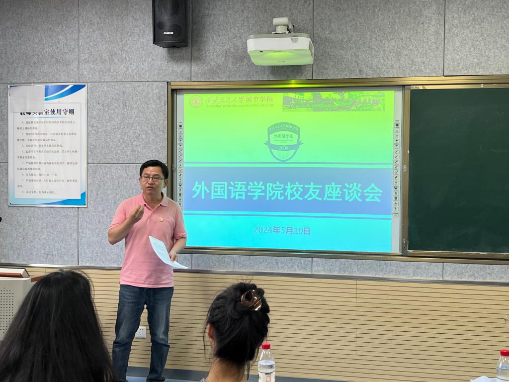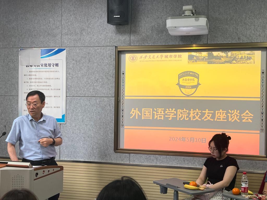 5月10日下午,Beat365在B304召开校友交流座谈会,师生、校友代表欢聚一堂,畅叙情谊,共谋发展。院长郭继荣、副院长徐素云、院长助理吴夫迎、英语系主任丁媛、副主任袁长普、院办主任关天骄、学生工作负责人吴丹出席座谈会,会议由团工委书记韩蓉主持。