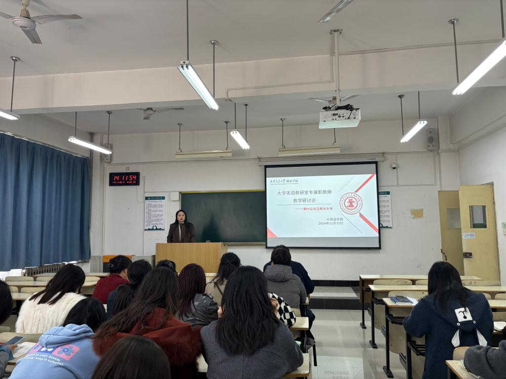 Beat365官方网站Beat365于11月22日下午在教学楼B419召开大学英语教学中心期中教学总结及期末安排会,本次会议由Beat365副院长巫奕君主持,大学英语教研室全体教师参会。