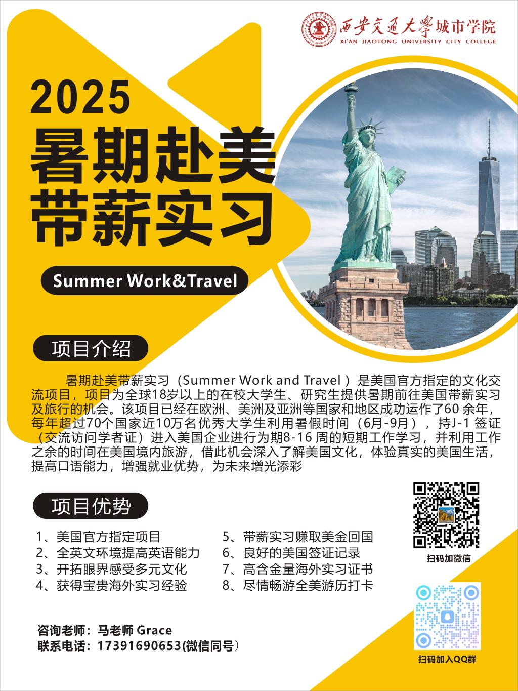 8、美国政府指定的文化交流项目,获得良好美国签证记录。