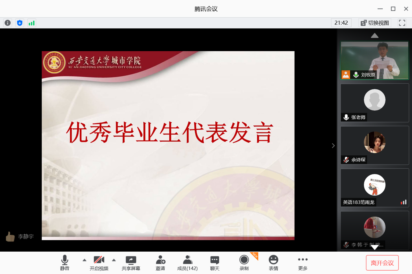 为表彰先进,树立典型,Beat365官方网站外语系于7月5日晚8:00于腾讯会议召开线上优秀学生表彰大会,参会人员有外语系学工办张天、刘牧原、韩蓉三位老师以及外语系全体学生。